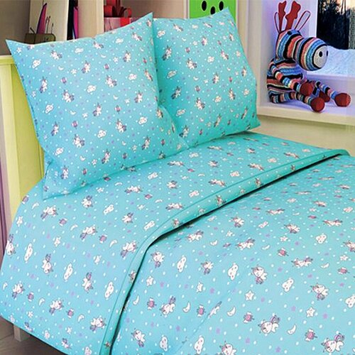 КПБ 1,5-спальный Детское Единорожки-4/1, бирюзовый