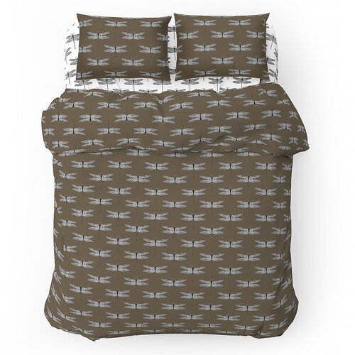 Пододеяльник на кнопках 2-х спальный "Стрекозы, кофе" 175х215см, поплин "Премиум" 115г/м2, хлопок 100%