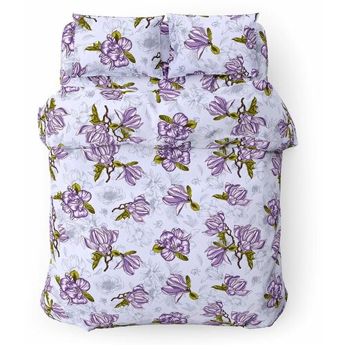 Пододеяльник на пуговицах Евро Макси "Магнолии" 220х240см, поплин "Премиум" 115г/м2, хлопок 100%