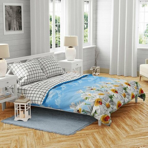 Постельное белье 1.5 спальное "Лидер Дом", поплин, 70х70, хлопок 100%, синее