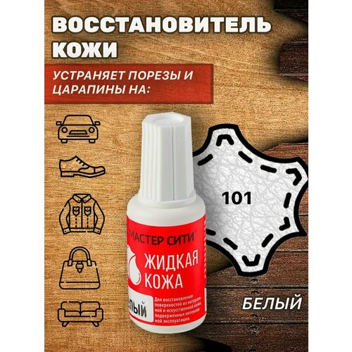 Жидкая кожа мастер сити для гладких кож, флакон с кисточкой, 20 мл. ((103) Бело-серый)