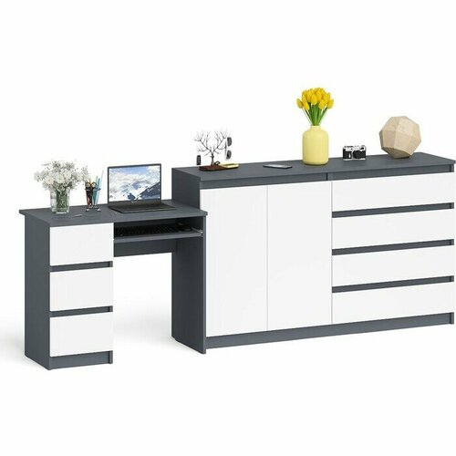Комплект СВК Мори Стол компьютерный МС-6 левый + Комод МК1600.1, цвет графит/белый