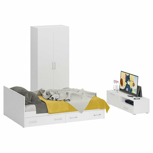 Спальня белая Стандарт № 3 Стандарт с кроватью 1400, спальное место 1400х2000 мм, без матраса, основание есть