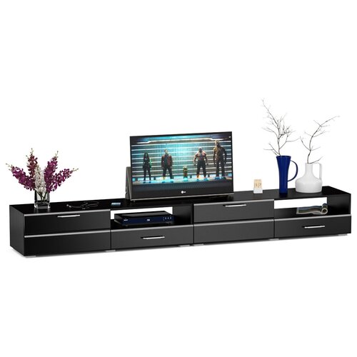 Две ТВ тумбы Ларго 1,4 цвет корпус венге/фасады МДФ чёрный глянец, ШхГхВ 280х46х35 см, НЕ универсальная сборка