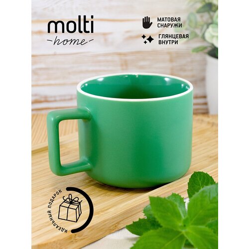 Кружка глянцевая для чая и кофе molti Promo чашка подарочная 320 мл, зеленая