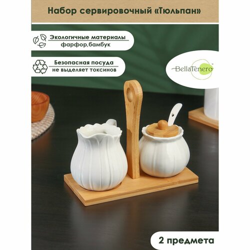 Набор фарфоровый сервировочный BellaTenero «Тюльпан», 2 предмета: молочник 200 мл, сахарница с ложкой 170 мл