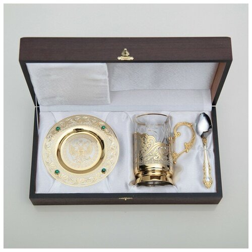 Чайный набор герб РФ (подстаканник с блюдцем)