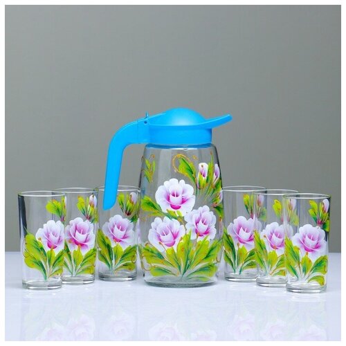Набор для сока "Розочка" художественная роспись, 6 стаканов 1250/200 мл