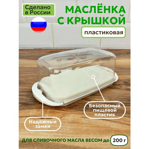 Белая пластиковая масленка для сливочного масла с крышкой