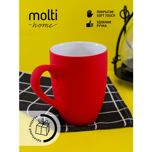 Кружка для чая для кофе Surprise Touch c покрытием софт-тач, красная, 350мл