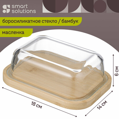 Масленка для хранения масла и сыра, боросиликатное стекло, 640 мл, прозрачная, Smart Solutions, SFE-SS-BD-GLS-640