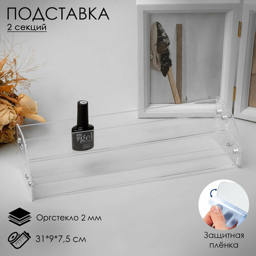Подставка под лаки 2 этажа, 31×9×7,5 см, оргстекло 2 мм
