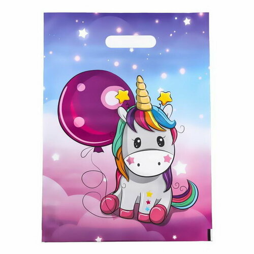 Пакет "Единорог с шариком", полиэтилен. с вырубн. ручкой, 30 x 40 см, 50 мкм набор 10 штук