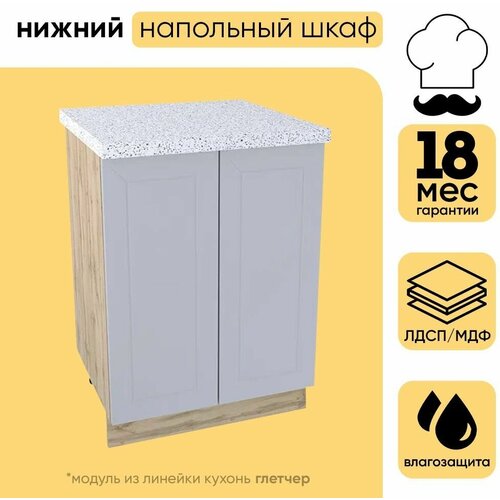 Кухонный модуль шкаф нижний напольный с 2 створками ШН 600 глетчер, дуб вотан/гейнсбоо силк 81,6х60х47.8