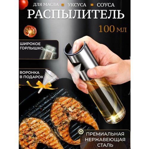 Кухонный распылитель для масла, уксуса/ 100мл / Дозатор-спрей бесцветный, серебристый