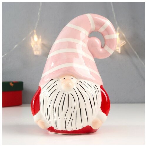 Сувенир керамика "Дед Мороз, полосатый розовый колпак" 18х11,7х10,9 см
