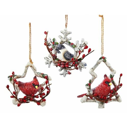Ёлочная игрушка зимняя птаха - кардинал в елочке, полистоун, 10 см, подвеска, Kurts Adler C8882-3