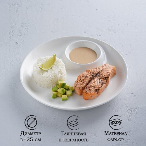 Блюдо фарфоровое с соусником White Label, d=25 см