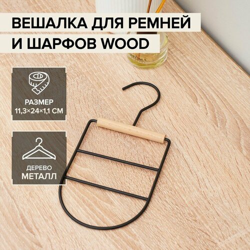 Вешалка оргазайзер для ремней и шарфов LaDо́m «Wood», 11,5×23,5×1,1 см, цвет чёрный