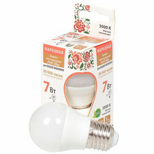 Лампа светодиодная E27, 7 Вт, 55 Вт, шар, 3000 К, свет теплый белый, TDM Electric, Народная