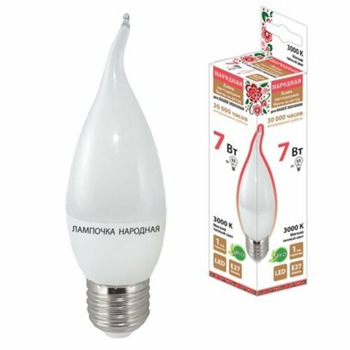 Лампа светодиодная E27, 7 Вт, 55 Вт, свеча на ветру, 3000 К, свет теплый белый, TDM Electric, Народная
