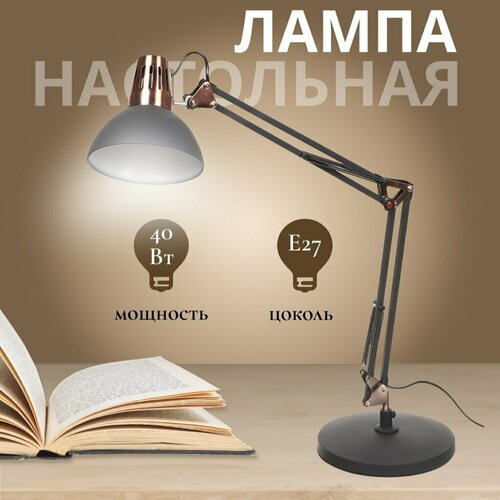 Светильник настольный на подставке, E27, 40 Вт, серый, абажур серый, SPE17156-25/333940