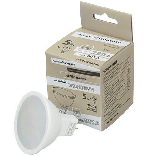 Лампа светодиодная GU5.3, 5 Вт, 35 Вт, 220 В, рефлектор, 4000 К, свет холодный белый, TDM Electric, Народная
