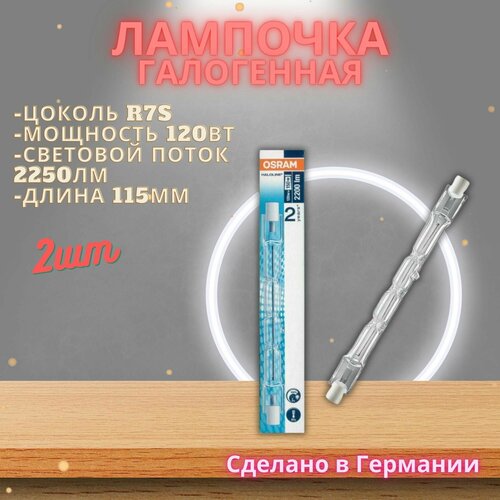Лампочка галогенная R7S 115мм 120Вт, 2шт, Osram, Germany