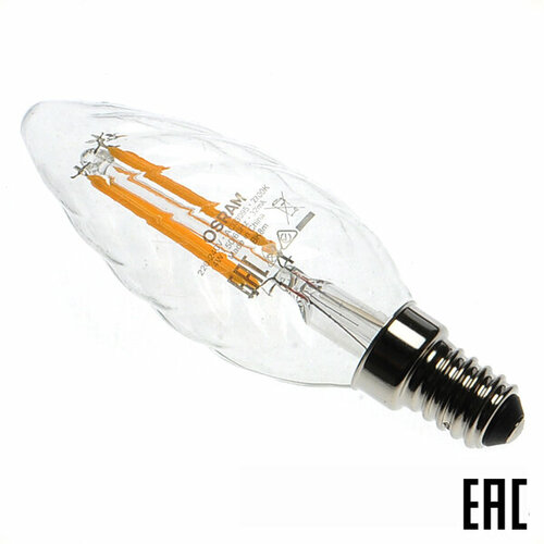 Лампа филаментная светодиодная OSRAM 4Вт Е14 230В 470Лм 2700K светодиодная "свеча витая" теплый белый свет OSRAM