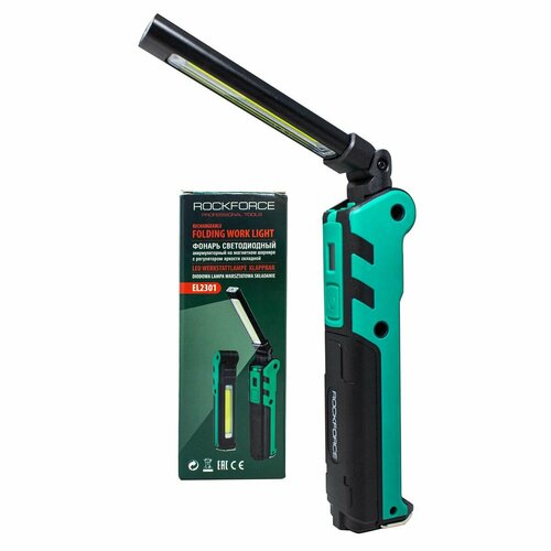 Лампа светодиодная аккумуляторная с магнитом(5W/3WCOB,150/360Lumen,3.7V,2000mAh, t зарядки 4ч, зарядка USB, защита гнезда зарядки, поворотная 270гр) Rock FORCE RF-EL2301