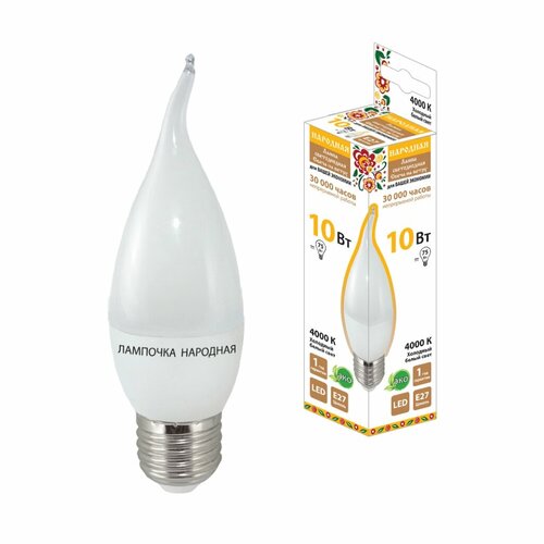 Лампа светодиодная E27, 10 Вт, 75 Вт, свеча на ветру, 4000 К, свет холодный белый, TDM Electric, Народная