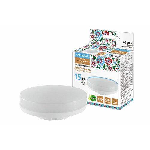 Лампа светодиодная GX53-15 Вт-230 В-6500 К-Э, h=26 мм, Народная TDM SQ0340-1576