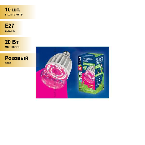 (10 шт.) Светодиодная лампочка Uniel фито лампа св/д для растений E27 20W 21.5мкмоль/с прозр. 146x80 IP54 LED-M80-20W/SP/E27/CL