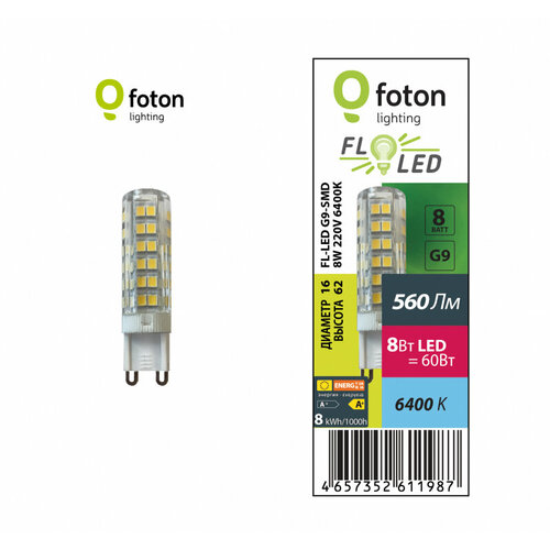 Светодиодная лампа FOTON LIGHTING FL-LED G9-SMD 8W 220V 6400К G9 560lm 16*62mm
