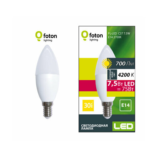 Светодиодная лампа FOTON LIGHTING FL-LED C37 7.5W E14 4200К 220V 700Лм 37*100мм