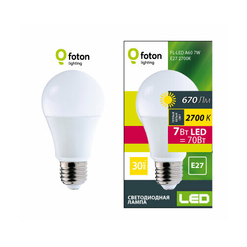 Светодиодная лампа FOTON LIGHTING FL-LED A60 7W E27 2700К 220В 670Лм 60*109мм (упаковка 10 шт.)