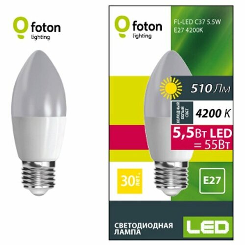 Светодиодная лампа FOTON LIGHTING FL-LED C37 5.5W E27 4200К 220V 510Лм 37*100мм