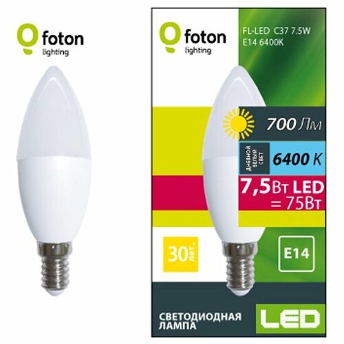 Светодиодная лампа FOTON LIGHTING FL-LED C37 7.5W E14 6400К 220V 700Лм 37*100мм