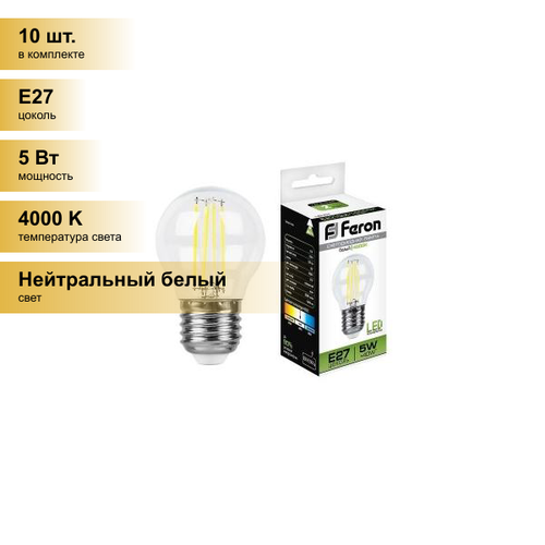 (10 шт.) Светодиодная лампочка Feron филамент шар G45 E27 5W(550lm) 4000K 4K прозрачная 74x45, LB-61 25582