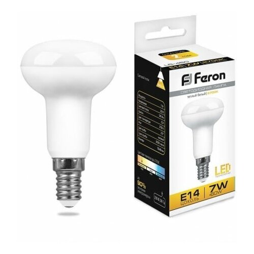Лампа светодиодная LED зеркальная 7вт Е14 R50 теплый (LB-450) | код 25513 | FERON (60шт. в упак.)