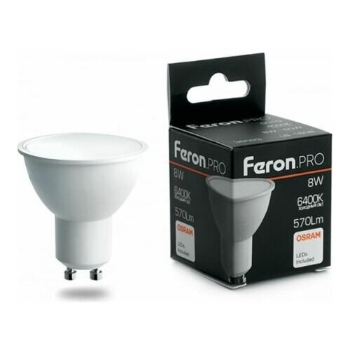 Лампа светодиодная LED 8вт 230в GU10 дневной Feron.PRO | код 38094 | FERON (6шт. в упак.)