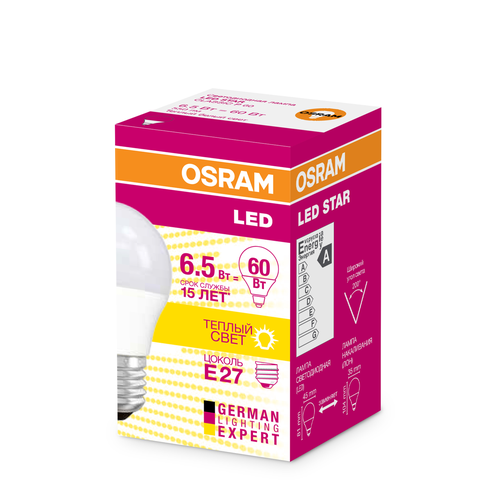 Лампа светодиодная Osram Е27 6.5Вт холодный свет шар