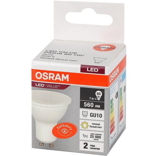 Лампа светодиодная OSRAM LED Value PAR16, 560лм, 7Вт (замена 60Вт), 3000К, 10 шт.