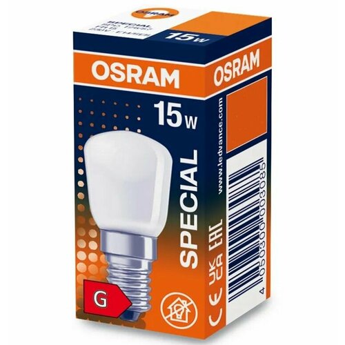 1 шт/уп. Лампа для холодильника 15W 220-240V E14 T26 2700К Угол 360 град. D-26mm L-57mm Матовое Стекло Свет Теплый белый. OSRAM Лампа накаливания для холодильников, вытяжек и швейных машин, уп. 1шт