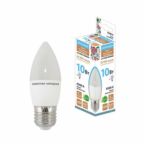 Лампа светодиодная E27, 10 Вт, свеча, 6500 К, свет холодный синий, TDM Electric, Народная