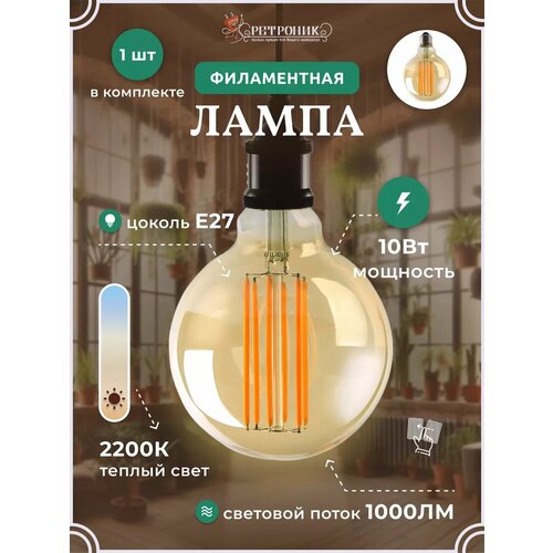Лампа филаментная винтажная Ретроник Винтаж, янтарное стекло, 10 Вт, 2400, E27, G95