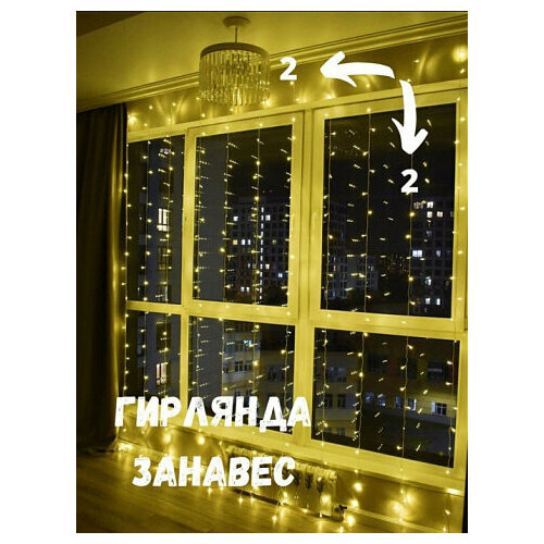 Гирлянда электрическая интерьерная 3х2 метра, Cветодиодная гирлянда штора на Новый год, Занавес, Электрогирлянда, Теплый