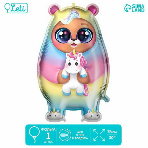 Шар фольгированный 30"Мишка-единорог"