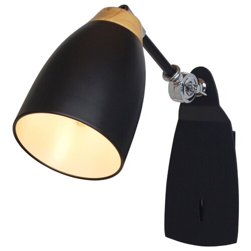 Светильник настенный бра с выключателем под лампу Е27, черный/дерево