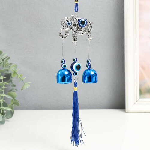 Музыка ветра металл "Слоник" от сглаза с кисточкой 2 колокольчика 24 см